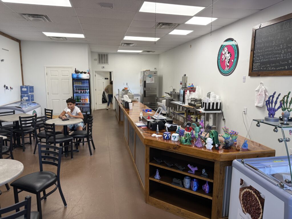 Simple Answer. Handcrafted premium ice cream, fresh tacos, and 3D Printing. Oh Yes, that’s right. A fun spot for families and foodies alike— all while being able to print anything your mind can imagine and its all, right in the heart of your neighborhood.